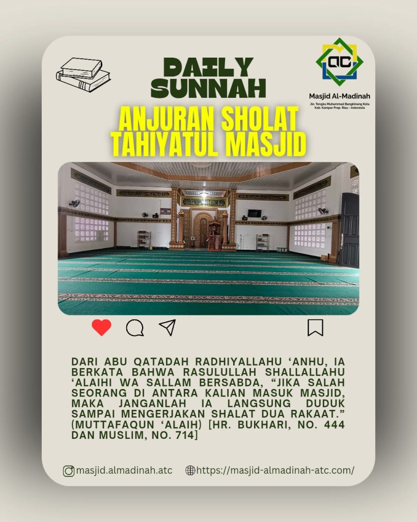 2. ๐Ÿ’Ž Menghidupkan sunnah Nabi ๏ทบ โ€” orang yang menjaga tahiyyatul masjid termasuk orang yang mengikuti tuntunan Rasulullah ๏ทบ.