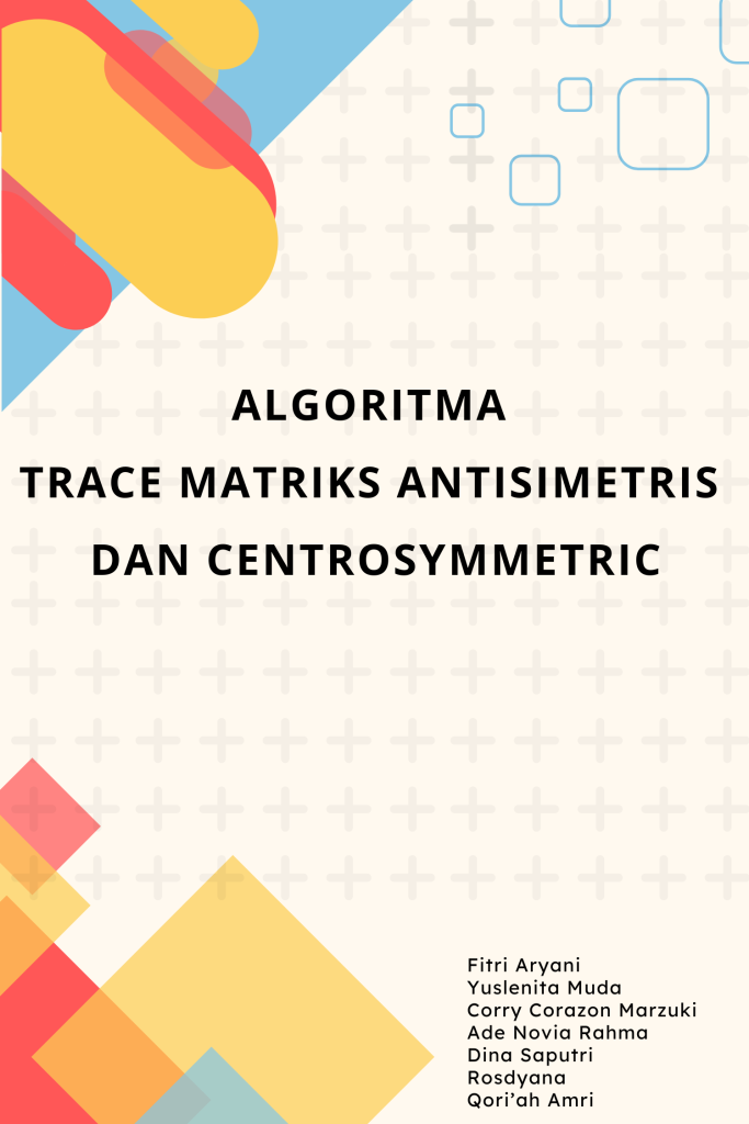 Buku ini di membahas tentang matriks antisimetris dan centrosymmetric, trace matriks berpangkat, algoritma trace matriks antisimetris berpangkat bilangan bulat, algoritma trace matriks centrosymetric berpangkat bilangan bulat . lebih lanjut, pembahasan pemrograman MATLAB sebagai platform pemrograman dan komputasi numerik.